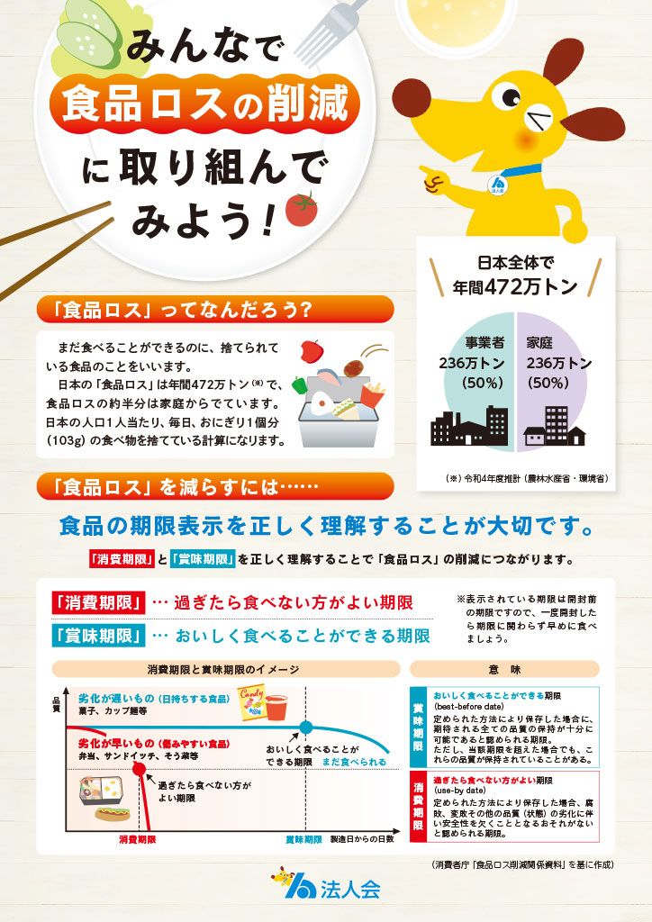 法人会版3010運動として、法人会 女性部会「一期一会(15・10)のすすめ」に取り組んでおります。その推進策として『食品ロス』削減の啓発のための三角柱POPを作成しました。